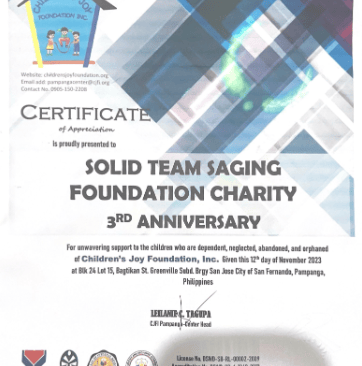 The founder of SOLID TEAM SAGING charity foundation is a passionate individual who is dedicated to helping orphanage children, street children, and less fortunate children. His joy comes from seeing the smiles on their faces, knowing that he has made a positive impact in their lives. He focus his love and attention on these children, and he finds great fulfillment in being able to provide them with the support and care they need. His passion extends beyond just the orphanage, as he also loves to help the community in the Philippines get back on their feet. Through STS foundation, he strives to make a difference and bring hope to those who are in need.